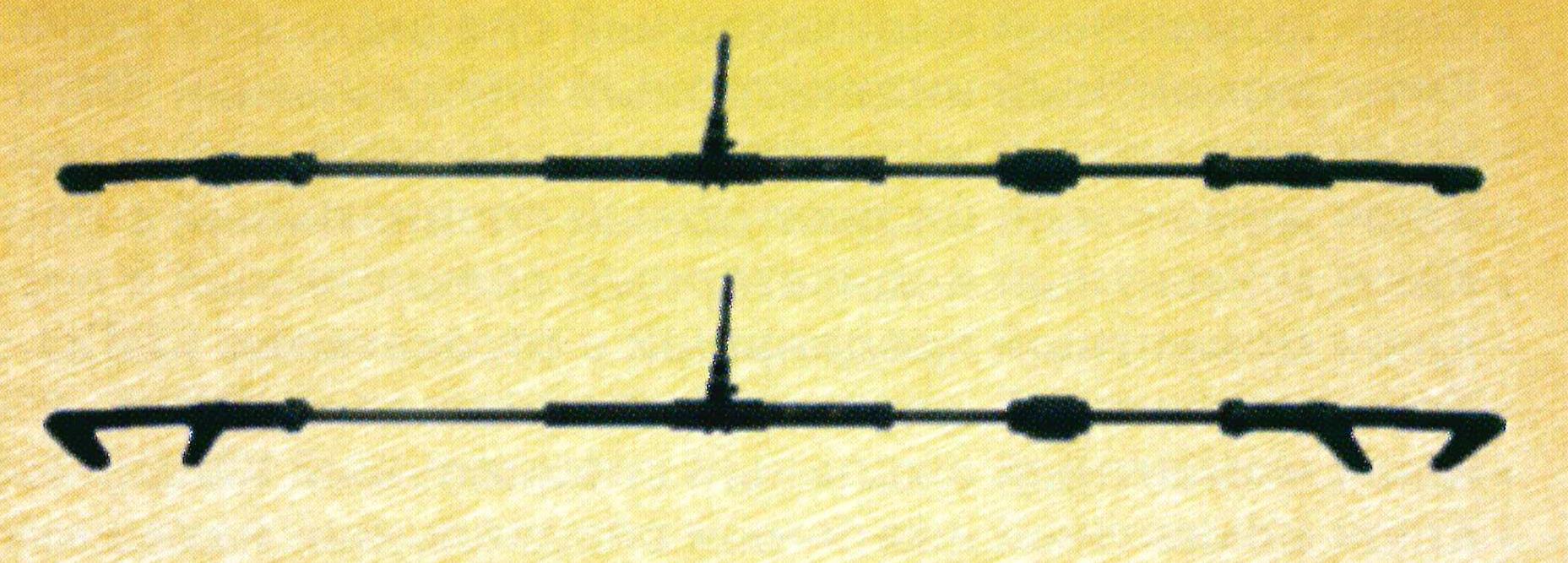 Лом лапчатый применяется для захвата и вытаскивания костылей из шпалы на полную высоту без подкладывания под опорную часть головки посторонних предметов.